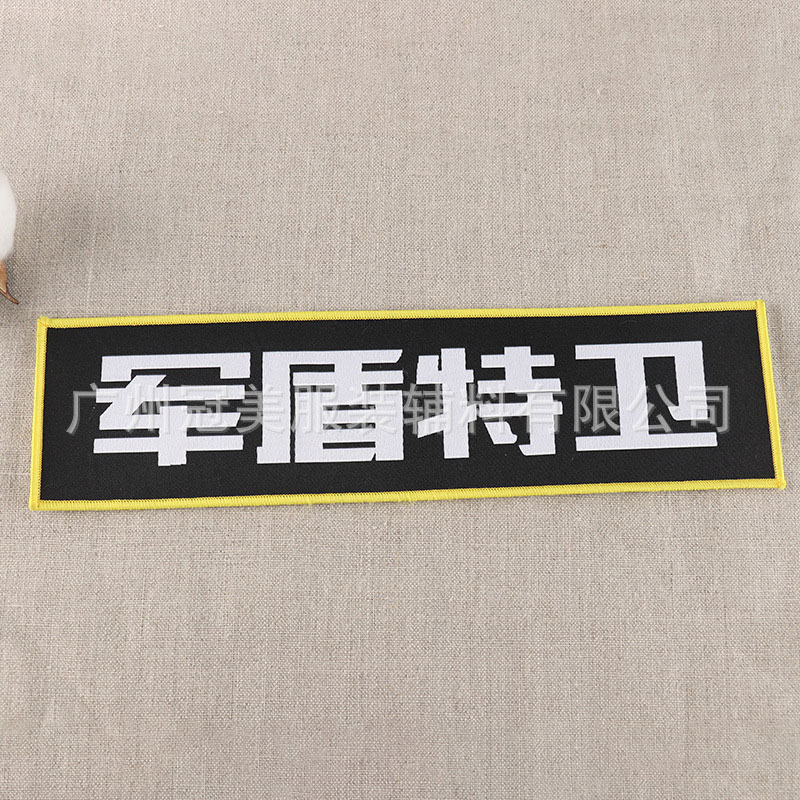 高纬密领标织唛特勤魔术贴锁边标识白底黑字锁边布贴